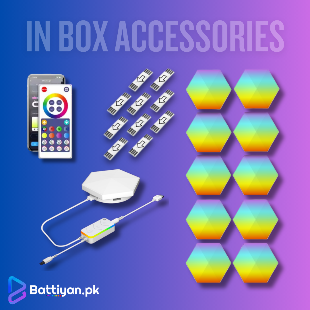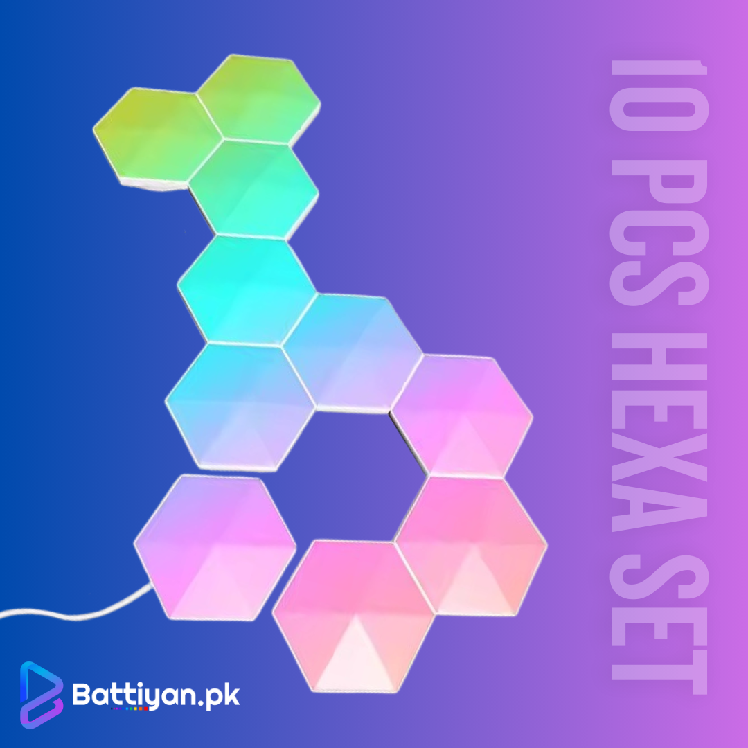 RGB Hexa by Battiyan | 10 Pcs Smart Hexagon Wall Lights (13 LEDs Each) | 6-Way USB Joints | WiFi Tuya App, Alexa & Google Control | Modular RGB Panels Pakistan